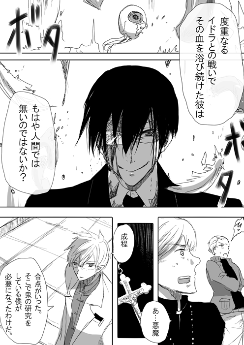 …二次元での嗜好というかなんというか。視覚的興奮というかなんというかがグロなんです。エロビデオ見ないけどホラーとかサスペンスとか内臓グシャーって言うのは大喜びで見てる人なんです。手術画面とか大好きもっと血出ろ。とび散れ。逃げまどえフハハ