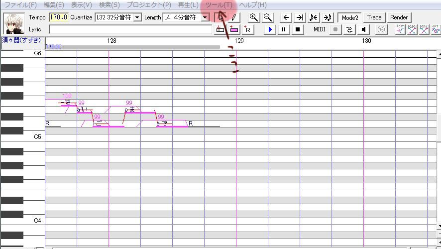 とりあえず後ろに音階セットしないことには音がでません。