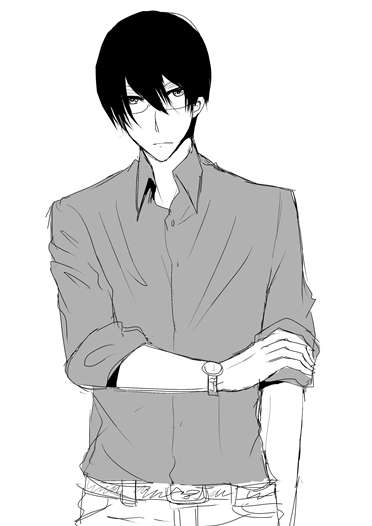三十路近いし普段から趣味がおss…渋いからチャラチャラした格好も卒業しているだろう…。Tシャツだったら長袖とかで、あんまり半袖着る感じじゃないかなと。たぶん人のいない自分の家とかだったら前髪分けるかかきあげるくらいしてるんじゃないかな。前髪UZAI状態なのは、目をじろじろ見られるのが嫌だから。カラコンつけろよとかは言わないお約束^ワ^